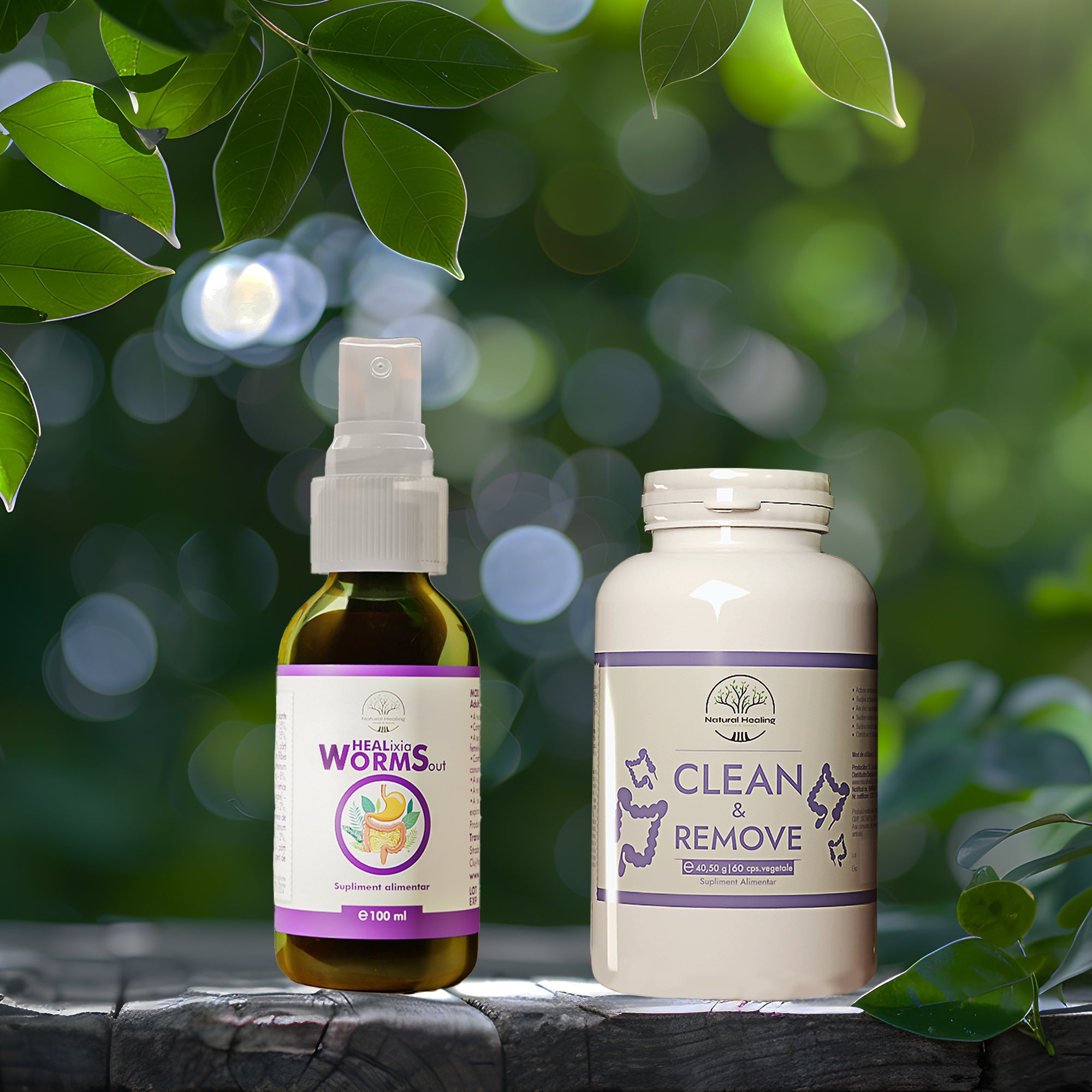 Respectarea dozajului: Pentru a obține beneficii optime, este esențial să respectați dozajul recomandat pentru fiecare supliment din pachet (HEALixia WORMS Out – 8 - 10 pufuri, de 3 ori pe zi. Natural Healing Clean & Remove – 1 capsulă de 2 ori pe zi, înainte de masă). Citiți cu atenție instrucțiunile de dozare și urmați-le cu strictețe pentru a asigura o administrare corectă și eficientă.