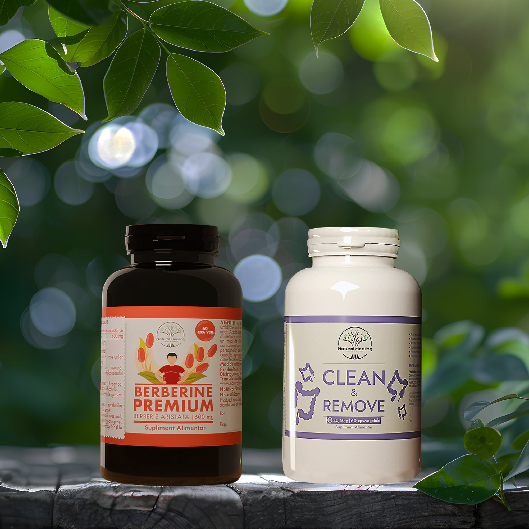 Descoperă pachetul Ajutor în Rezistența la Insulină, o combinație naturală de două suplimente complementare, creată pentru a susține echilibrul metabolic al organismului. Berberina Premium 600 mg sprijină metabolismul glucidic și menținerea nivelului normal al glucozei din sânge, iar Clean and Remove completează acțiunea pachetului prin susținerea digestiei, a funcției hepatice și a echilibrului digestiv general.