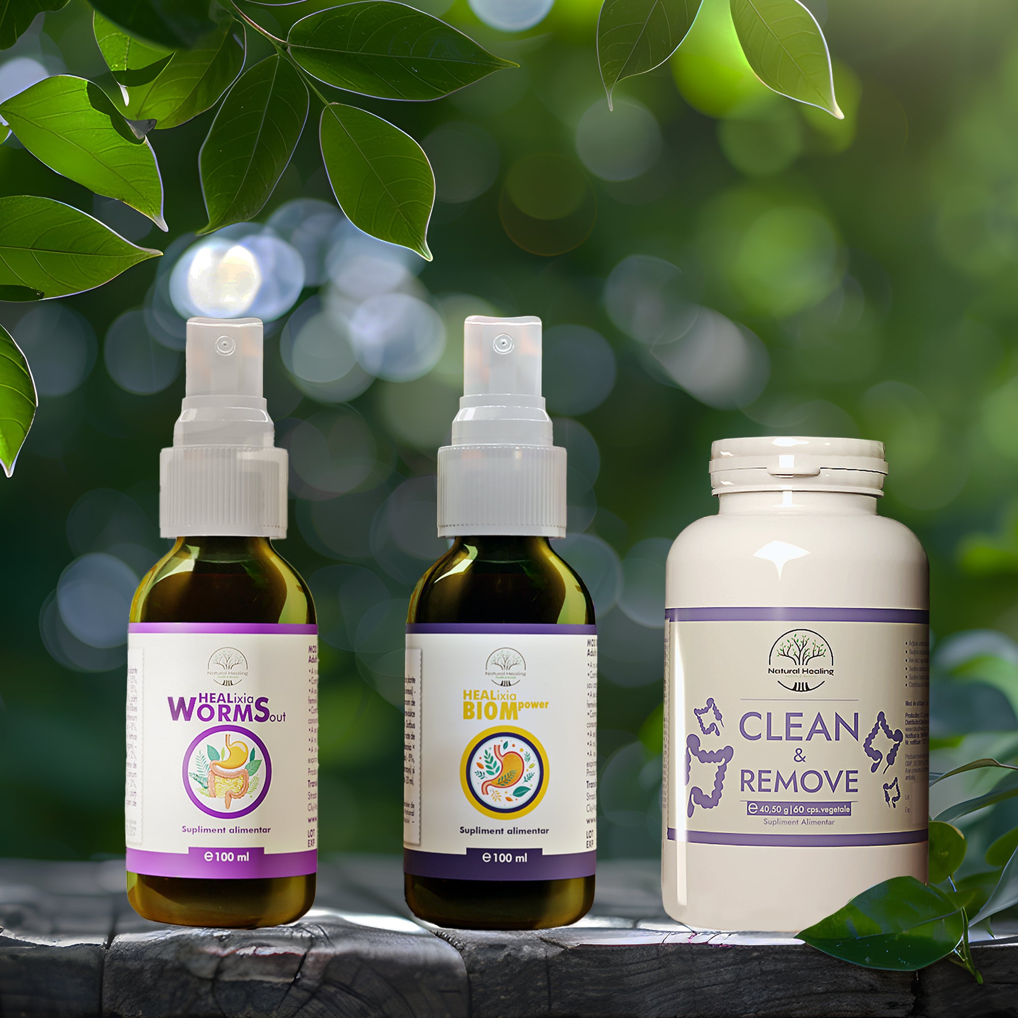 · Sprijină detoxifierea profundă și eliminarea paraziților intestinali, reducând supraîncărcarea sistemului imunitar (Clean & Remove, HEALixia WORMS Out).