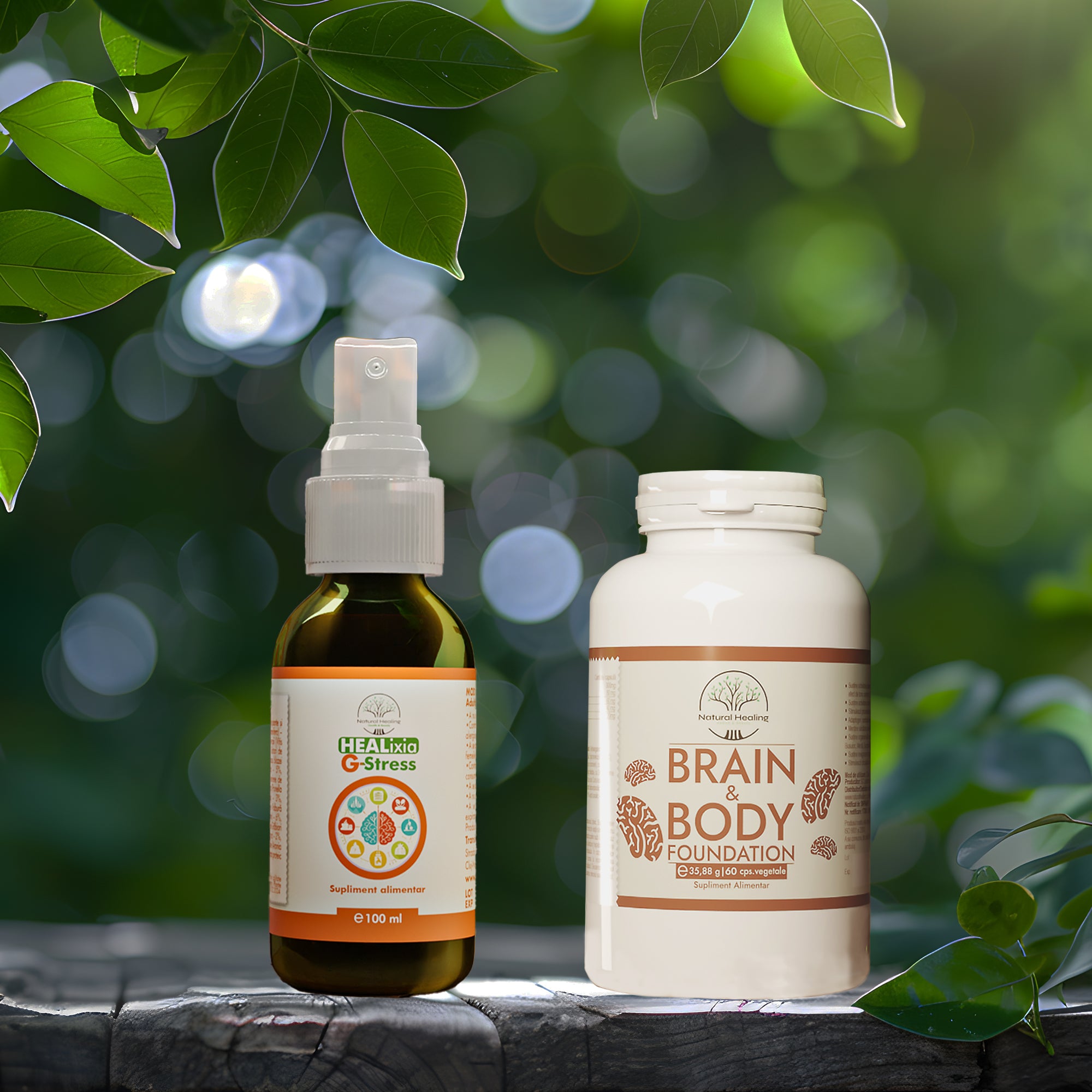 Descoperă pachetul Ajutor pentru Atac de Panică (oameni mici), o soluție completă și naturală pentru a susține echilibrul emoțional și a calma episoadele de anxietate la cei mici. Acest pachet conține două produse esențiale: Brain & Body Foundation și HEALixia G-Stress, care sprijină sănătatea sistemului nervos central, reduc răspunsul la stres și ajută la refacerea energiei.