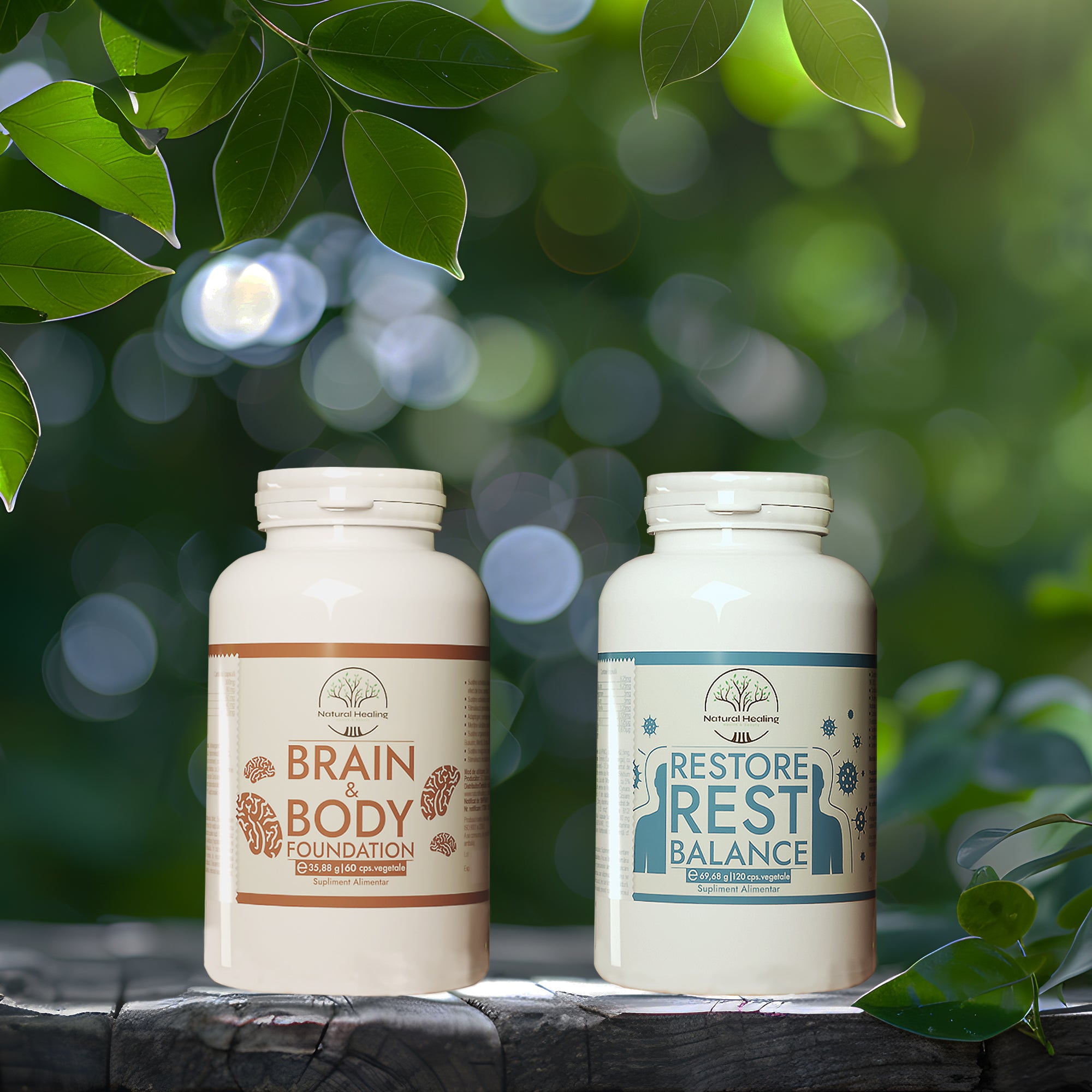 Respectarea dozajului: Pentru a obține beneficii optime, este esențial să respectați dozajul recomandat pentru fiecare supliment din pachet (Natural Healing Brain & Body - Câte 1 capsulă de 2 ori pe zi și Natural Healing Restore Rest Balance - Câte 2 capsule, de 2 ori pe zi). Cititi cu atentie instructiunile de dozare și urmați-le cu strictețe pentru a asigura o administrare corectă și eficientă.