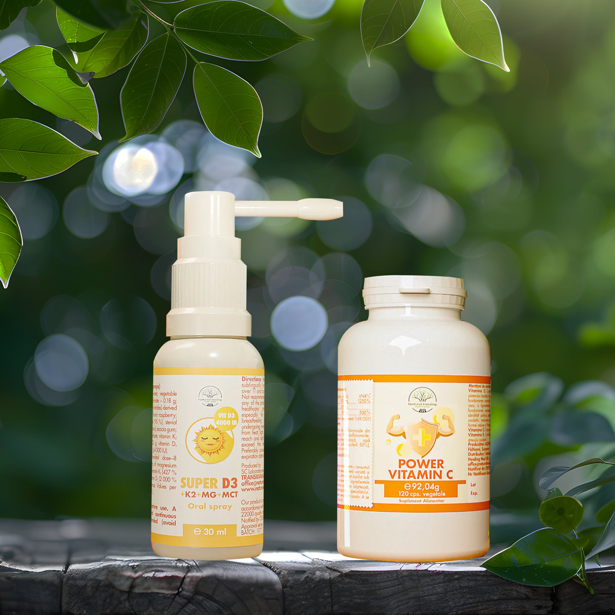 Întărește-ți bariera de apărare a organismului în mod natural și eficient cu pachetul Susținere pentru Imunitate, creat să susțină imunitatea, energia și vitalitatea organismului pe tot parcursul anului. Combinația dintre Power Vitamin C 1000 mg și SUPER VIT D3 4000 UI + K2 + MG + MCT oferă atât protecție antioxidantă, cât și suport pentru oase, mușchi și echilibrul mineral, în formule ușor de administrat.