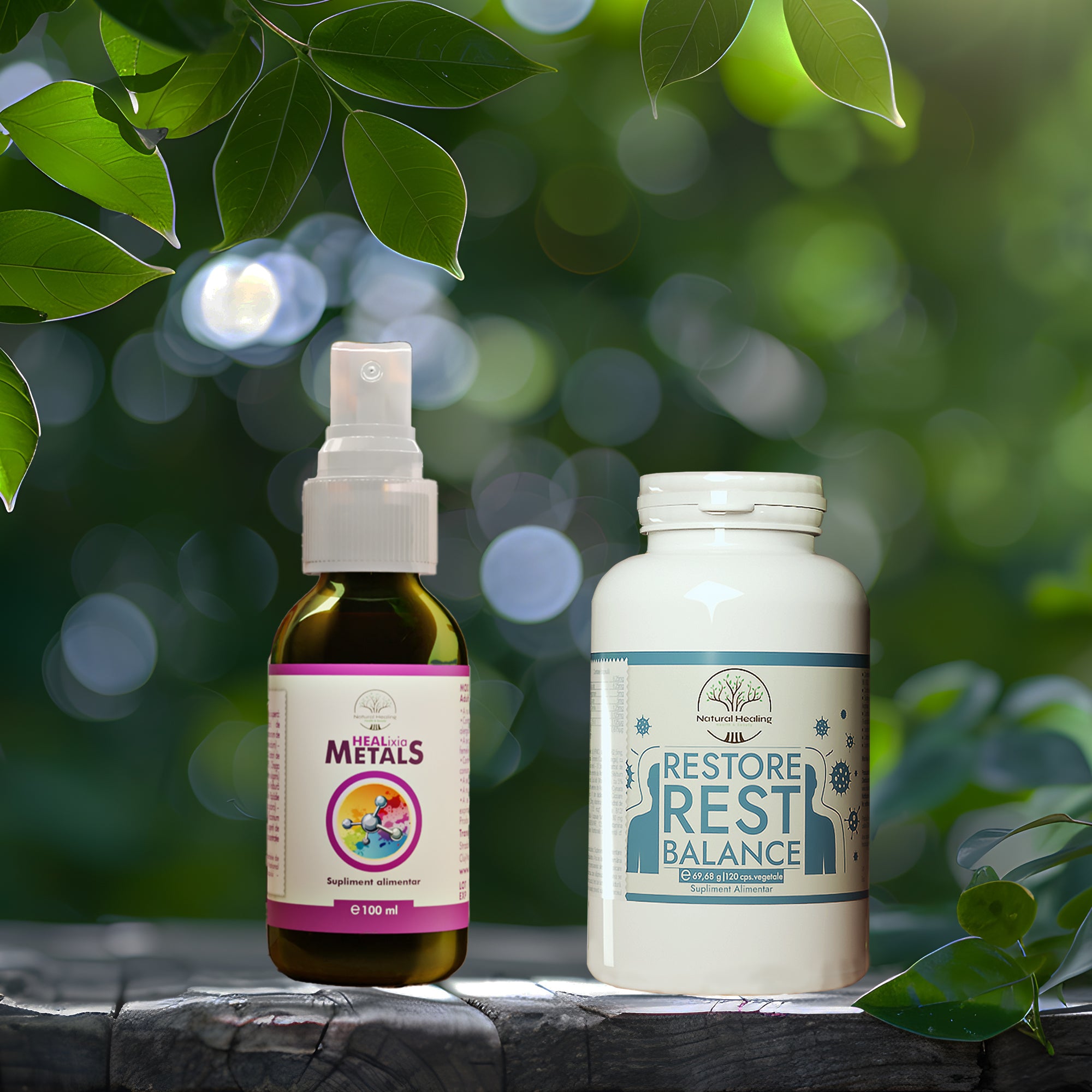 Respectarea dozajului: Pentru a obține beneficii optime, este esențial să respectați dozajul recomandat pentru fiecare supliment din pachet (Natural Healing Restore Rest Balance - Câte 2 capsule, de 2 ori pe zi și HEALixia METALS – 8 – 10 pufuri de 3 ori pe zi). Citiți cu atenție instrucțiunile de dozare și urmați-le cu strictețe pentru a asigura o administrare corectă și eficientă.