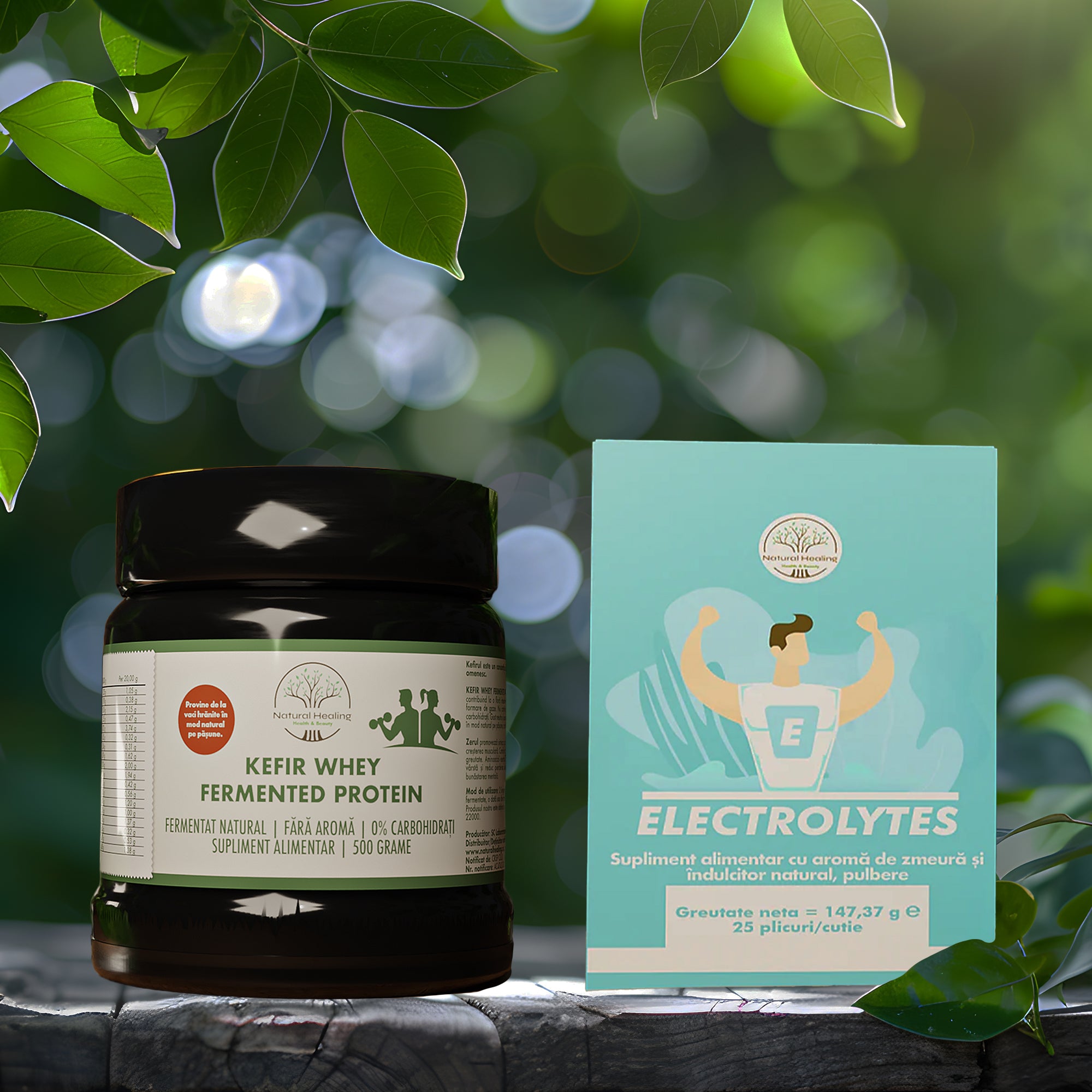 Refă-ți energia mai repede și susține-ți masa musculară, hidratarea și digestia cu pachetul Suport în recuperare după efort fizic. Combinația dintre Kefir Whey Fermented Protein (proteină din zer fermentat cu kefir) și ELECTROLYTES (electroliți pentru rehidratare și echilibru mineral) acoperă esențialul recuperării: proteine de calitate + minerale importante.