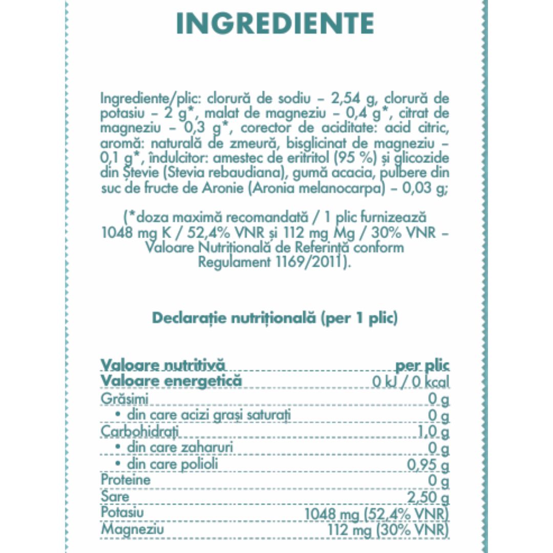 · ELECTROLYTES – pulbere pentru hidratare, echilibru electrolitic și energie naturală (147,37 g – 25 plicuri).