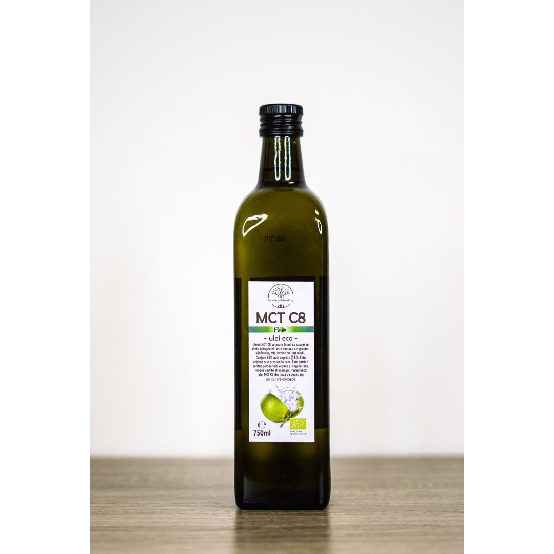 Uleiul de cocos MCT C8 se poate folosi cu succes în dieta ketogenică, este compus din grasimi sanatoase, trigliceride cu lant mediu. Trigliceridele cu lant mediu reprezinta o grasime sanatoasa, extrasa doar din nuca de cocos.
